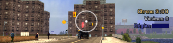 Il n’est pas utile de détruire les voitures, il faut surtout tuer les hommes. Comme dans 9mm Mayhem et Scooter Shooter vous pouvez activer trois gélules d’adrénaline par une simple pression sur la gâchette droite.